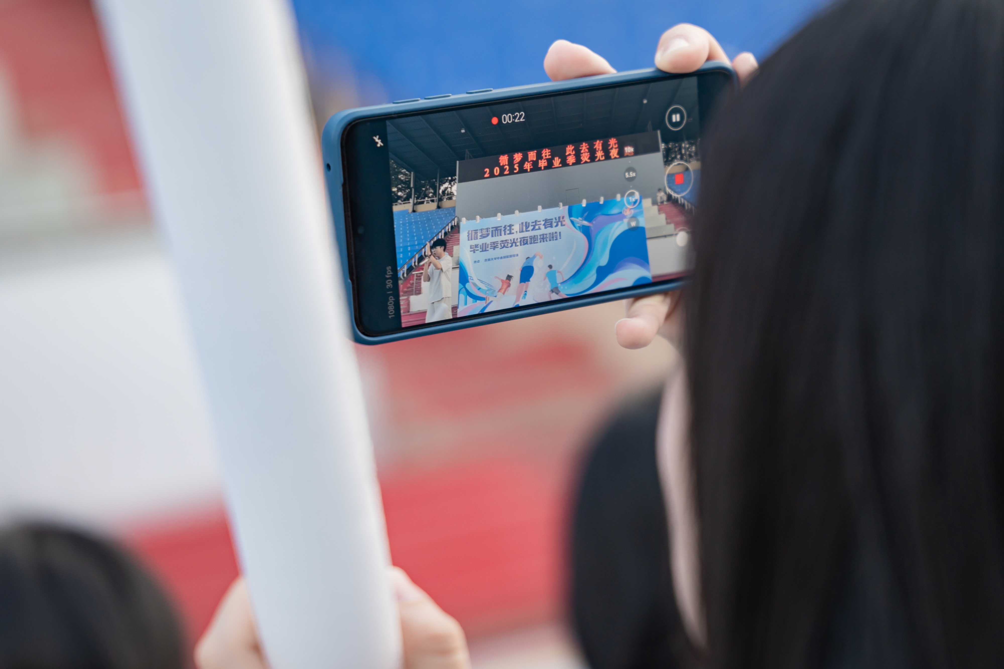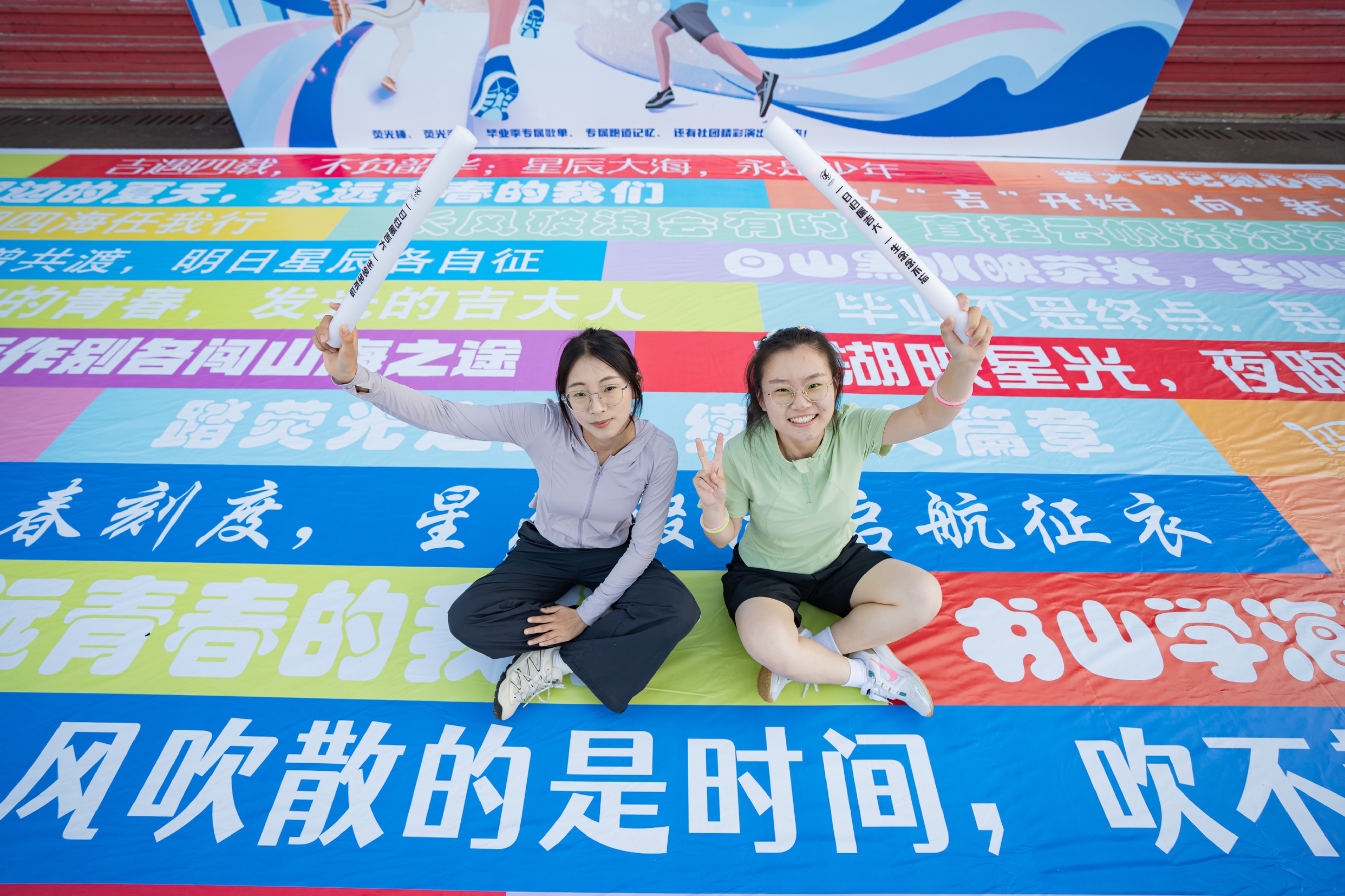 毕业季定制歌单的音乐响起,同学们手执荧光棒,一起奔跑。“大学生正处于人生最美好的春天,让我们在离开母校之前,播种下对未来的憧憬!”“祝毕业快乐,依然勇于冒险,依然璀璨!”“跃入人海,各有风雨灿烂!”“重相聚,轻别离”……跑道上记录着最朴素的青春话语,而这些共同构成着我们对青春最热忱的祝愿!