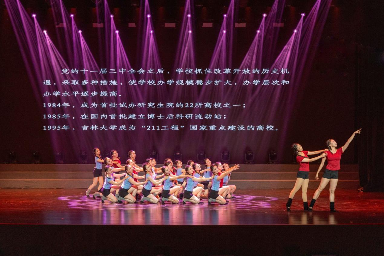 七秩庠序,千秋翰墨;巍峨吉大,屹立东方。一曲《吉大赋》完美承接演出的高潮,在恢弘壮丽的画卷中展现吉林大学之独特优势,飏昨日旗旌,显今日峥嵘。《“吉”刻启航》,昂首向未来。吉林大学的师生将在“求实创新,励志图强”的校训精神指引下深耕科研,砥砺奋发,在祖国最需要的地方潜心探索,努力为我国社会主义现代化强国建设贡献吉大力量。彩旗漫卷,热血奔腾;大风起舞,仁心为章。舞蹈《大风歌》以其活力之姿与肢体配合,凝聚起白求恩精神的坚毅底色,“毫不利己,专门利人”“满腔热忱,精益求精”,这是一代代吉大人最深切炽热的价值追寻。青春激荡,《龙耀东方》;永不言弃,坚守热望。“向着海洋,一起唱,蔚蓝的交响”。这是献礼新时代最诚挚的律动,亦是吉大青年勇担重任、挺膺有为的见证。舞姿翩跹,曼妙灵动;《河清海晏》,朝晖夕光。瞬间定格永恒,在此方舞台映照出吉大烂漫流转的至美时刻。