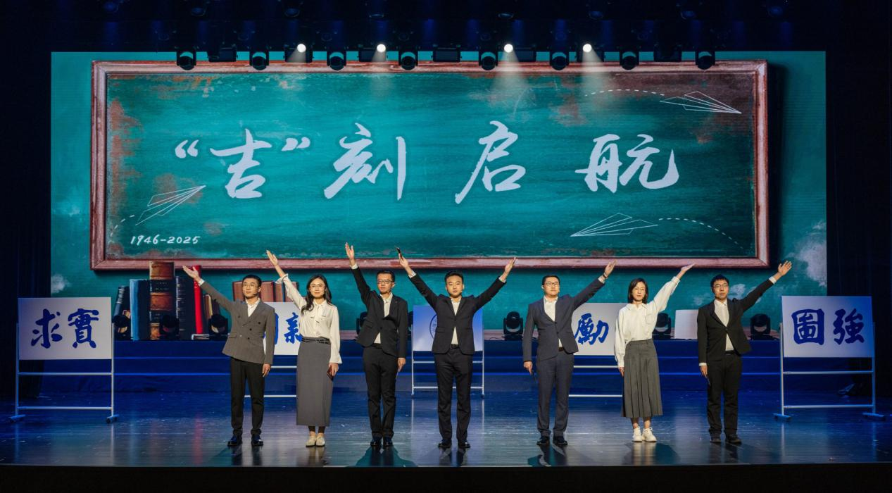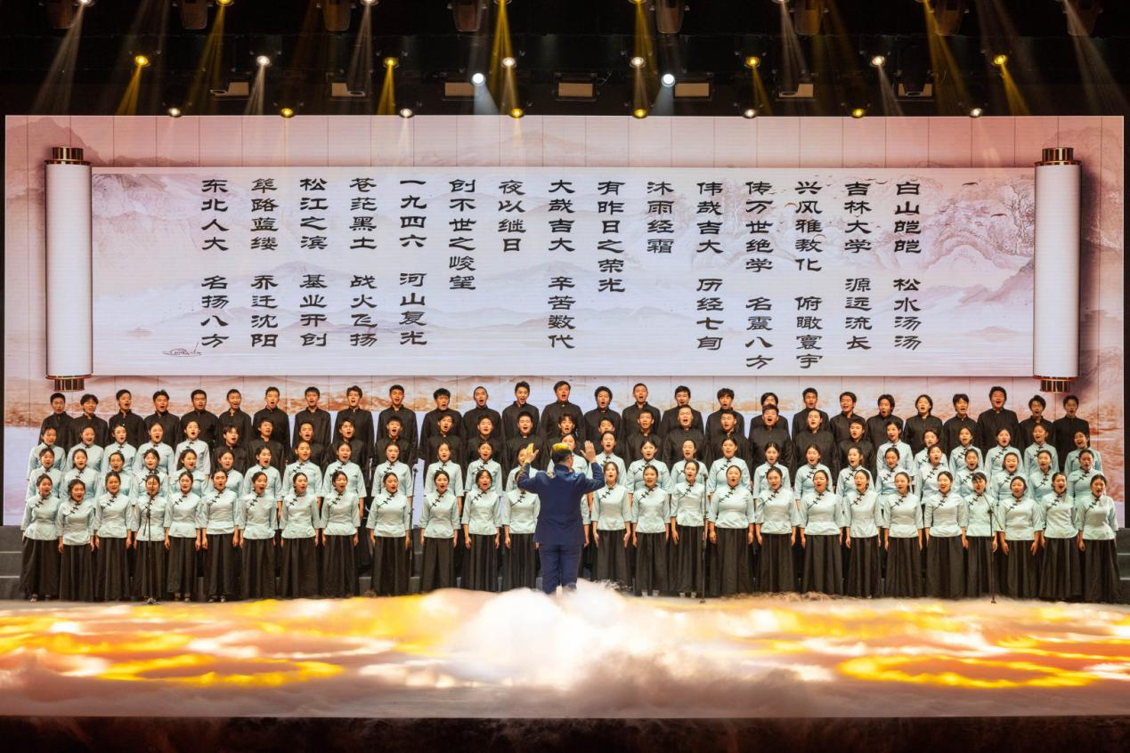 重温烽火岁月,潮头勇著华章。从星火初燃的东北行政学院到星光璀璨的吉林大学,演出以一曲振奋人心的《吉大赋》拉开序幕,深沉宏伟的旋律中,映照出前辈办学创业的风雨兼程与艰辛坎坷。北偏东兮东偏北,东北苍茫育栋梁。伴随音乐的厚重激昂,历史的光影帧帧流动,《北上北上》讲述了先生们坚定无畏、意志如钢,在寒夜中毅然挺立,用行动诠释“人比山高,脚比路长”的奋斗历程。昔血泪浸染寒江,今山河披覆霞光。从风雨飘摇的流亡悲歌,到民族复兴的时代交响,一曲《松花江上》,诉说着民族的苦难,也昭示着不朽的精神。笃教笃学培沃土,为时为世育英才。《薪火弦歌》担大任,初心如磐展宏猷。生动的舞台剧以“办优质教育,育专业人才”为核心,一歌一舞皆深植黑土大地,绽放出向阳而生的力量。呕心沥血筑伟业,踵事增华谱华章。舞蹈《初心·1946》将往昔岁月具象化,在静默而深挚的瞬间诉说着创校先贤的心声,激荡起生生不息的教育精神。