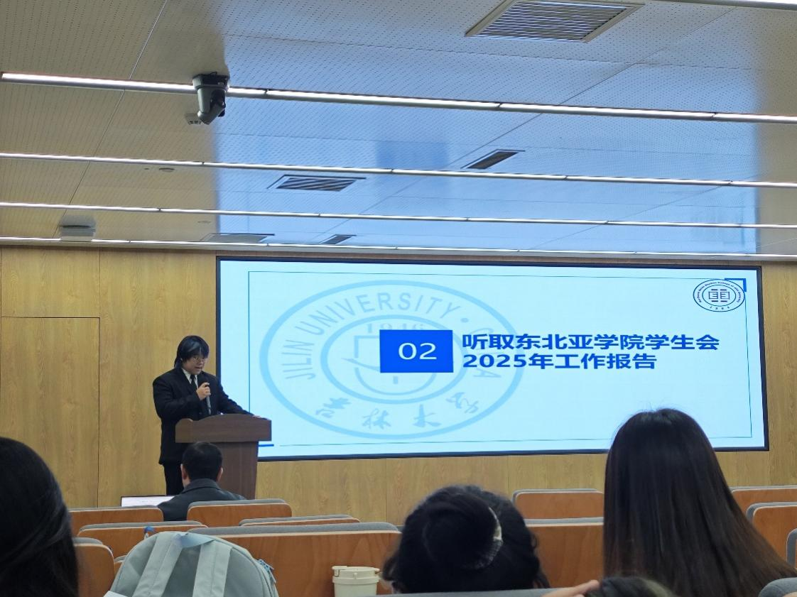 为进一步健全学生组织体系,激发团学组织工作活力,搭建优质学生服务平台,2025年11月9日,吉林大学东北亚学院第三次学生代表大会暨第三届团学组织换届大会在东荣大厦B215隆重召开。会议由本科生兼职辅导员刘俊麟主持,本科生辅导员贾琼老师以及全体本科生参会。