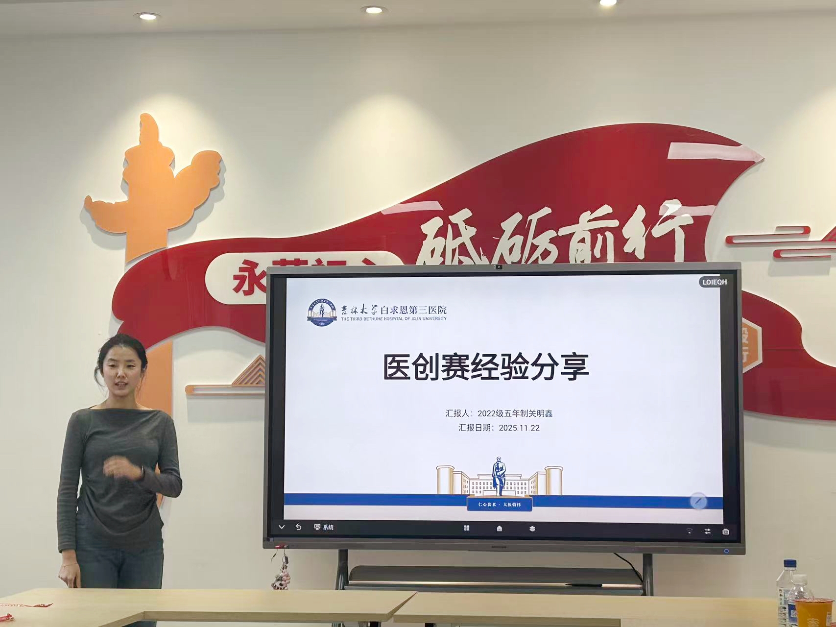 2022级本科生关明鑫曾以第一负责人身份斩获第十一届全国大学生医学创新大赛暨“一带一路”国际竞赛论坛国家级金奖、最佳风采奖。她以赛事流程与选拔规则为切入点,深入分享了参赛的心路历程与实战经验。从科研选题的精准定位到团队协作的高效推进,从项目设计的创新思路到实验方法的优化完善,再到答辩环节的技巧把控与全流程准备,她结合具体案例,为渴望参赛的同学们清晰勾勒出“以赛促学、学赛相长”的实践路径。分享结束后,她耐心解答同学们关于竞赛与学习平衡、赛事价值认知等疑问,干货满满的讲解让在场学子受益匪浅。