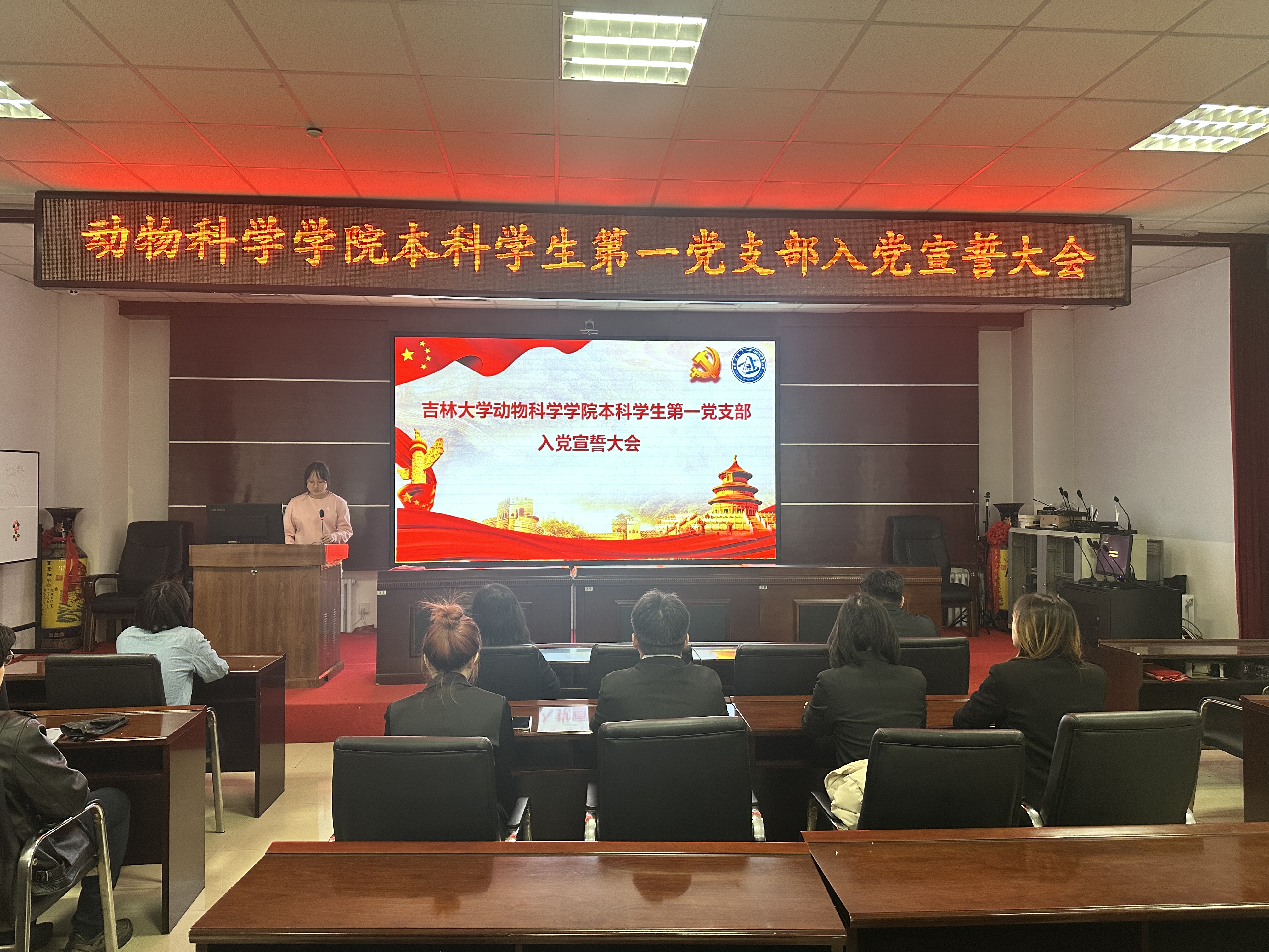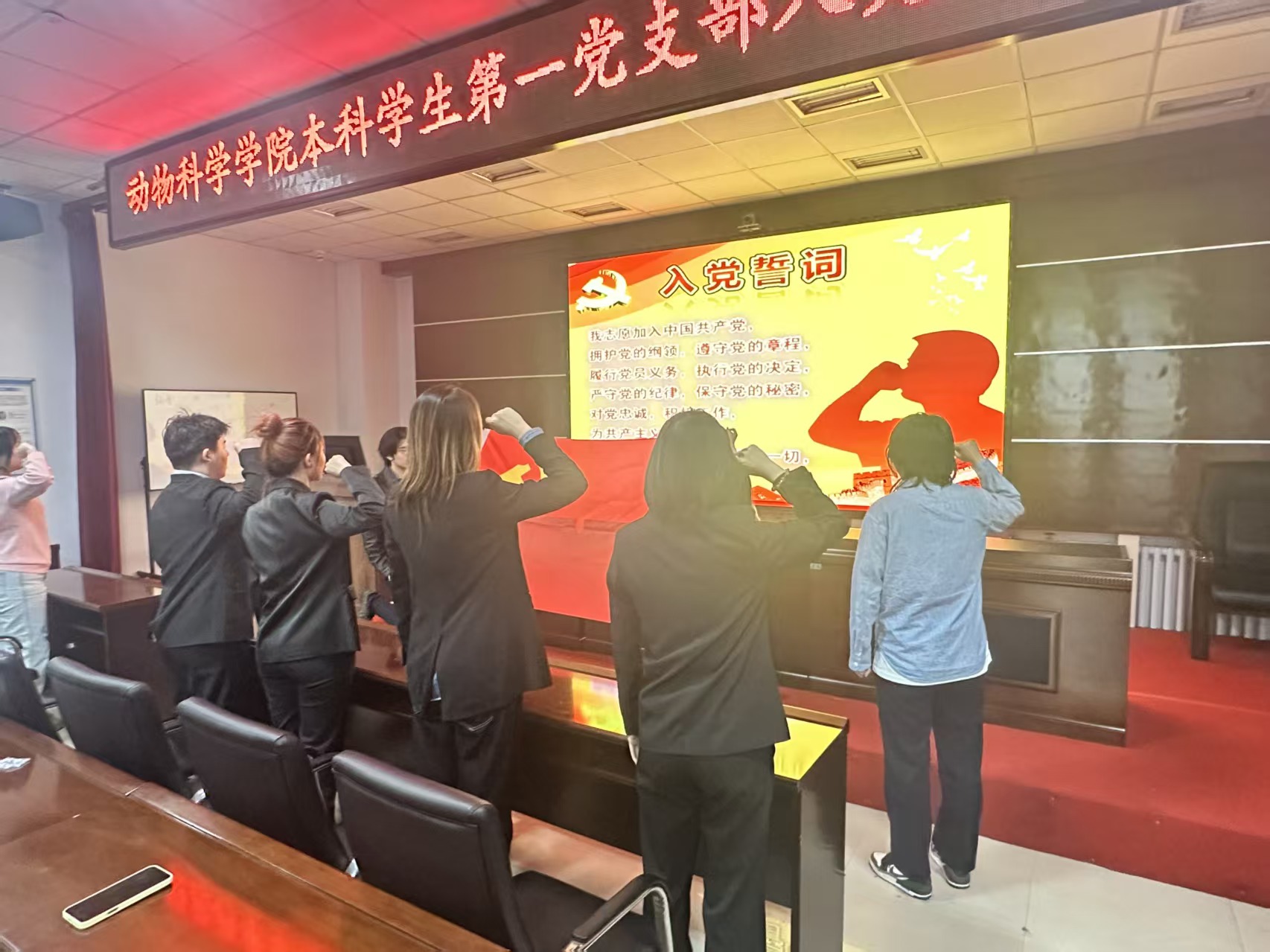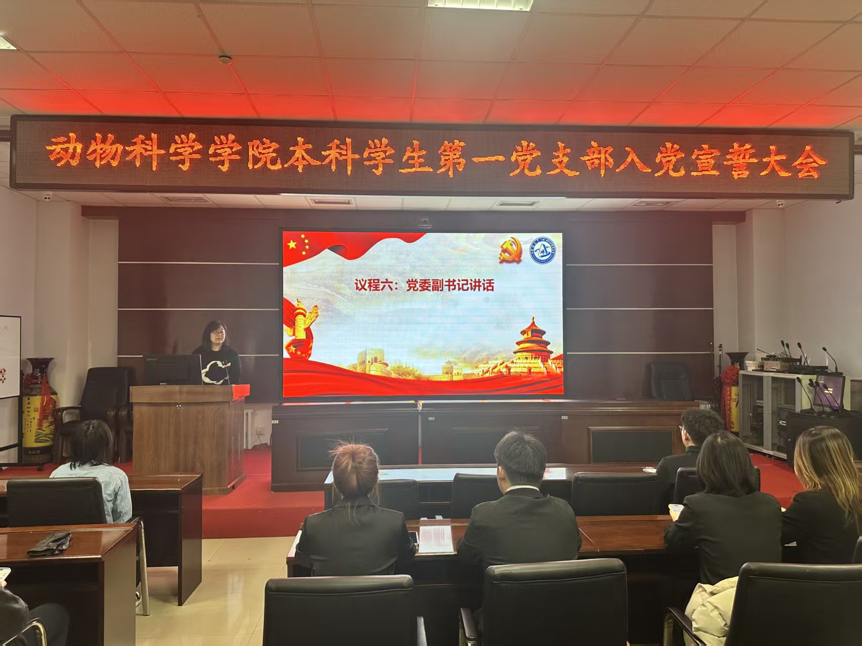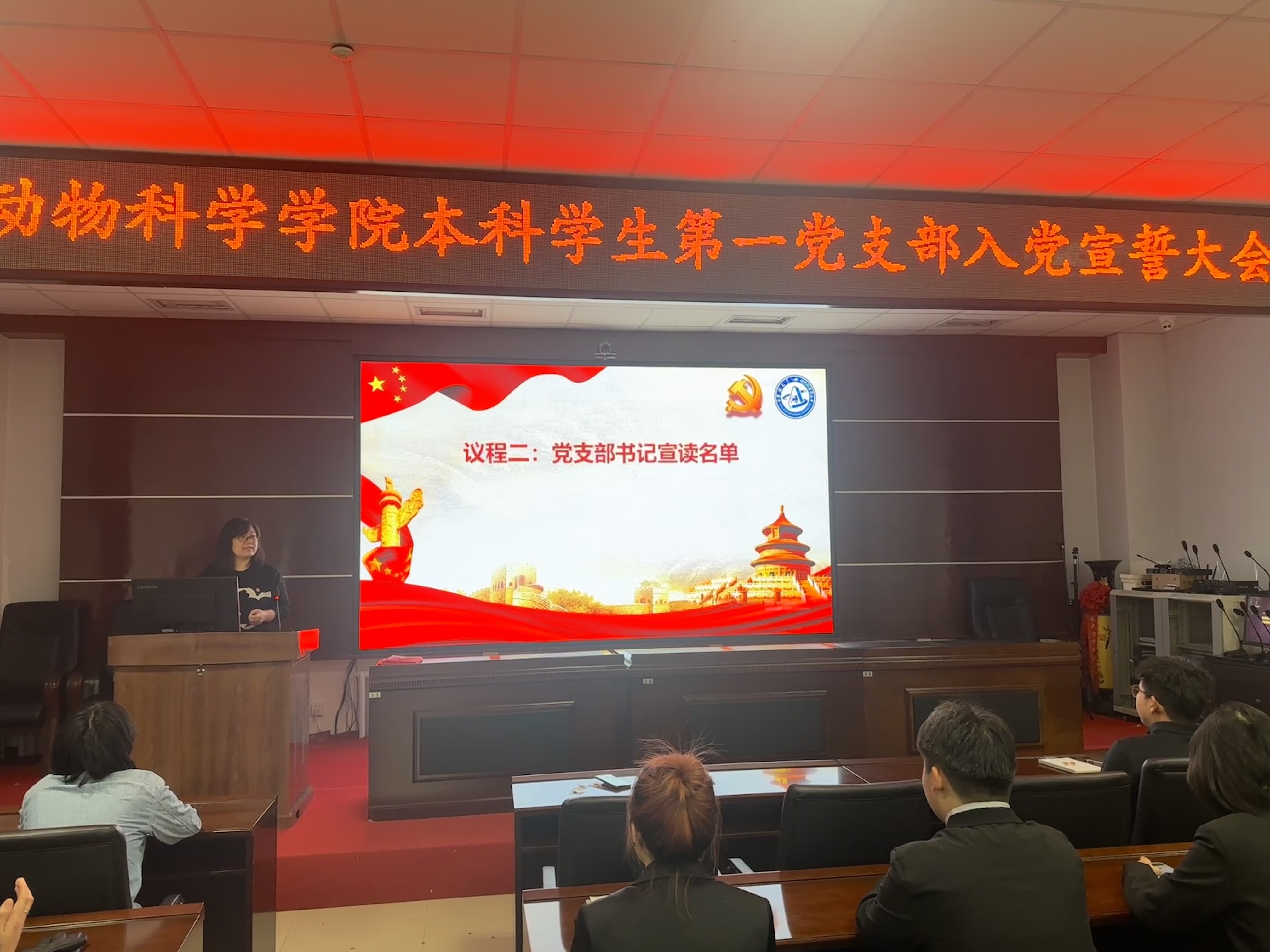 为加强党员队伍建设、强化新发展党员党性修养与责任意识,2025年 11 月 12 日,动物科学学院本科学生第一党支部举行入党宣誓大会。大会按既定议程有序推进,在庄严氛围中完成各项环节,为党组织注入新鲜血液。大会伊始,全体党员肃立高唱《国际歌》,在崇高庄严的旋律中拉开序幕。党支部书记肖建荣同志宣读新发展党员名单,明确新一批入党同志的光荣身份。