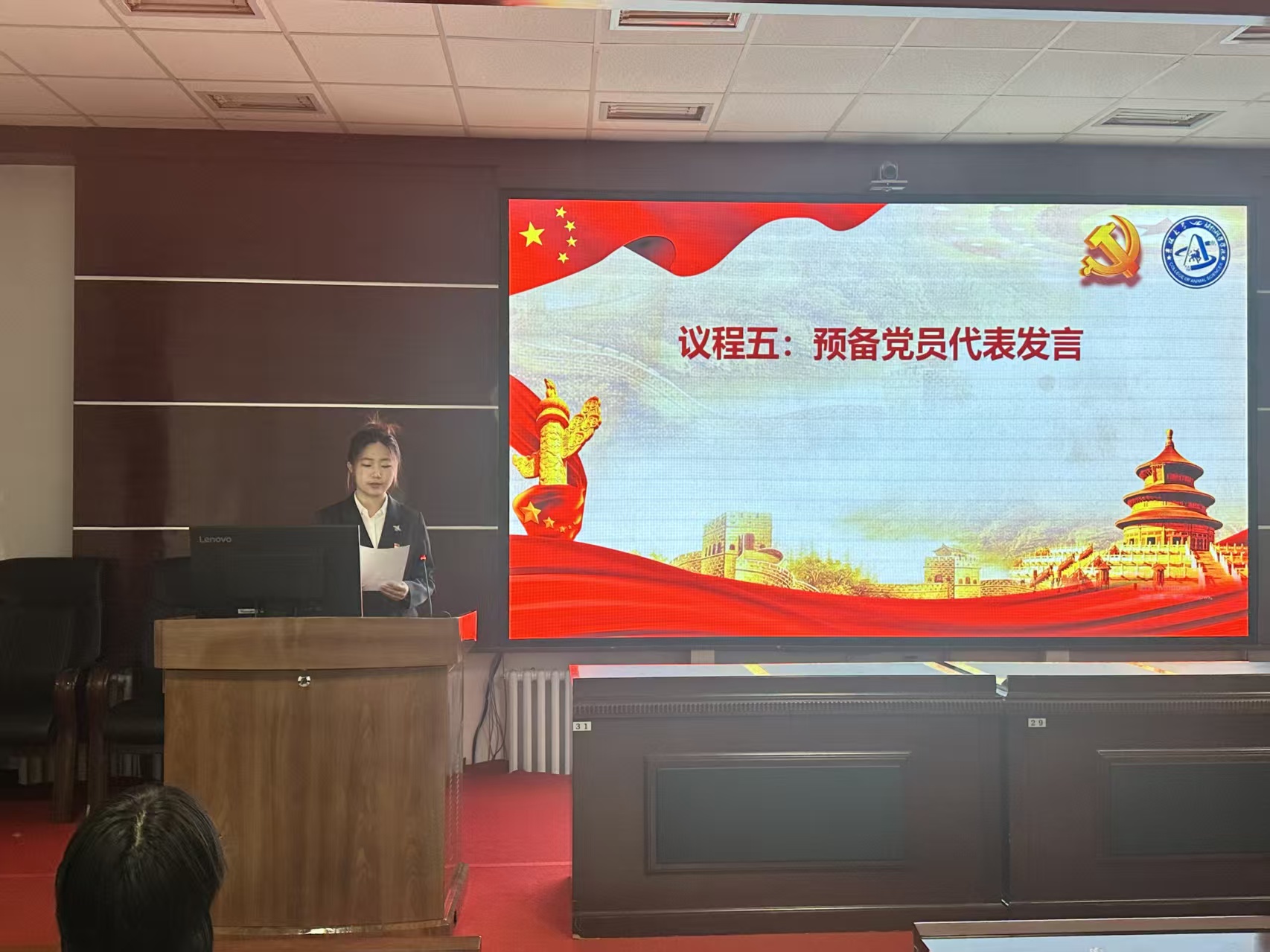 宣誓结束后,预备党员代表徐梓涵发言。她分享了自身入党历程与心得体会,表达对党的崇敬与热爱,承诺以此次宣誓为新起点,牢记初心使命,加强理论学习、提升专业素养,在学习工作生活中发挥先锋模范作用,以实际行动践行誓言,不辜负党组织的培养与信任。