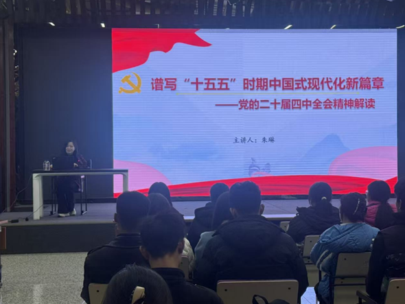 活动中,吉林财经大学教工党支部书记朱琳教授作为主讲人,围绕党的二十届四中全会精神展开系统解读。她从全会精神的丰富内涵与实践要求切入,深入梳理“十四五”时期我国经济社会发展取得的重大成就,对中国式现代化“十五五”行动纲领进行细致阐释,清晰勾勒出未来发展的目标与路径。她号召在场听众,要以苦干实干的务实作风将全会部署转化为具体行动,鼓励大家立足自身岗位主动担当、积极作为。现场参与的干部群众及我院学生代表纷纷表示,将以此次讲座为契机,进一步学习好、领会好、贯彻好全会精神,以攻坚克难的决心持续发力,为推进中国式现代化建设贡献力量。