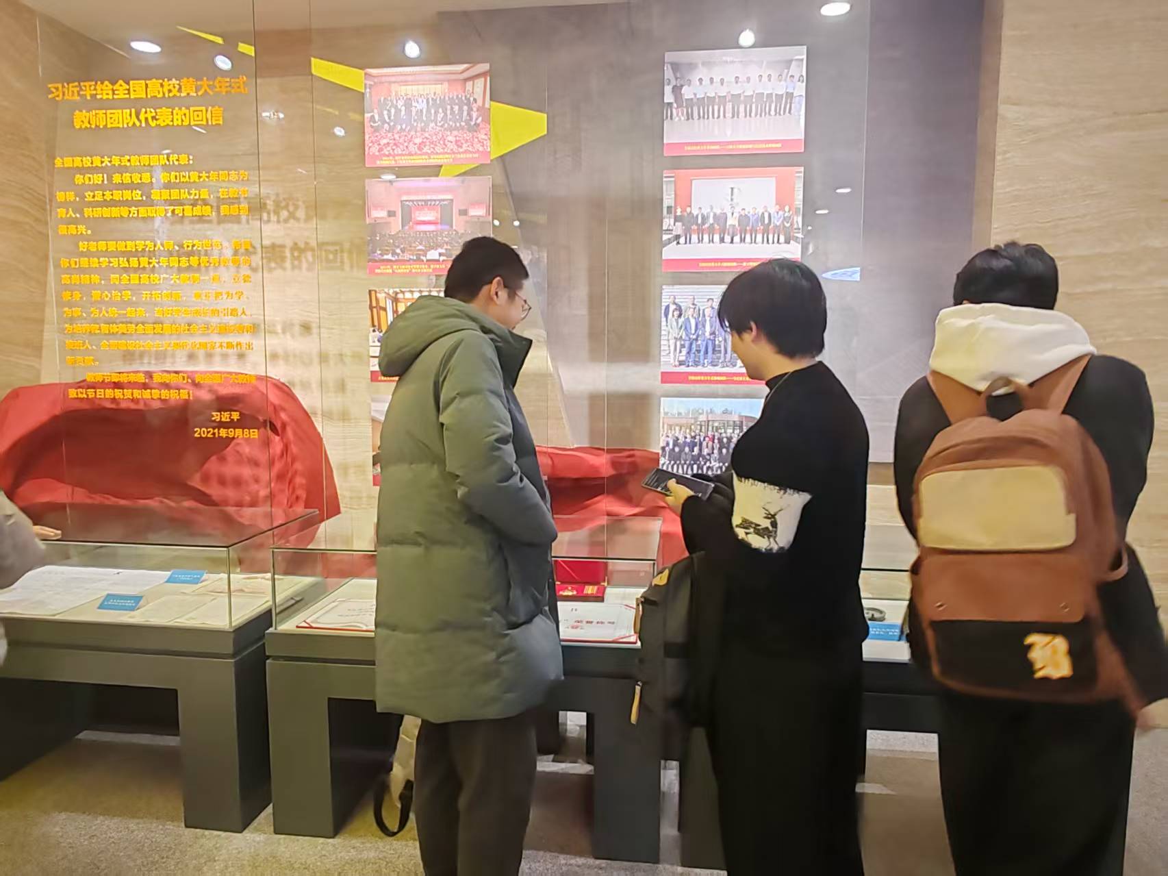走进展区,习近平总书记视察学校的珍贵画面和对黄大年同志先进事迹作出的重要指示,深深触动着每一位学员。这不仅让大家深切感受到党和国家对于高等教育、科技事业的高度重视与殷切期望,更将“心有大我、至诚报国”的黄大年精神烙印在心,坚定了大家科技报国的初心使命。