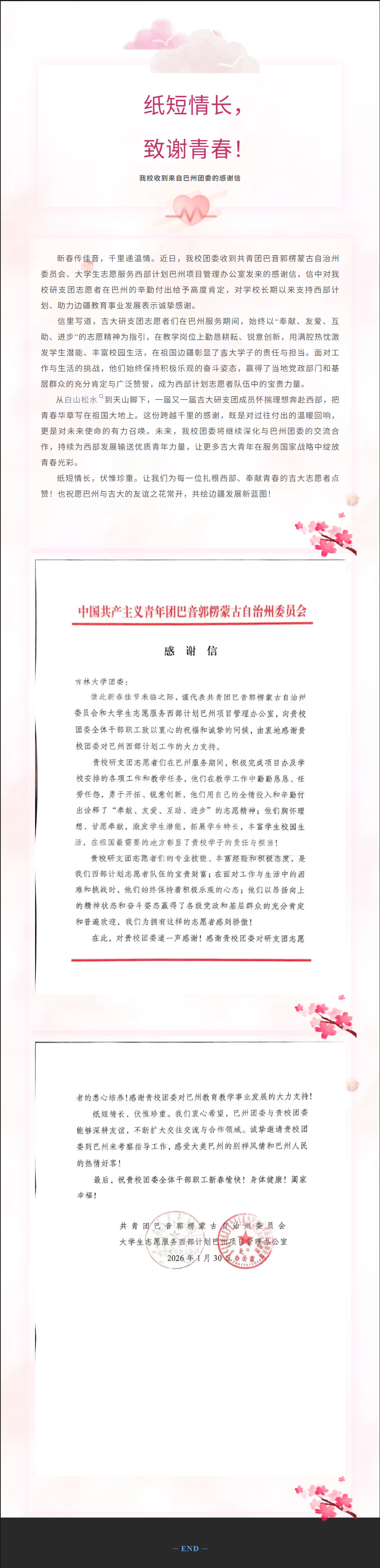 千里致谢!吉大研支团获巴州团委表彰