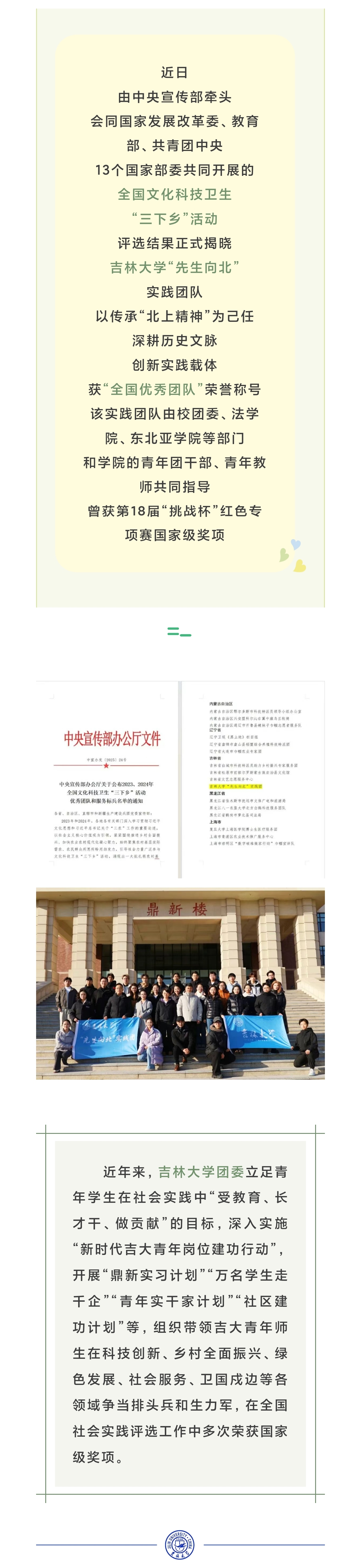 吉林大学社会实践团队获“全国优秀团队”荣誉称号