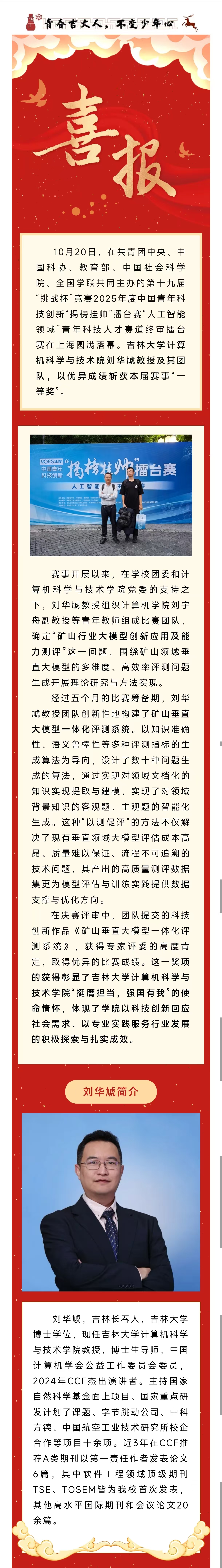上一条:优胜杯!主体赛特等奖+1,国奖+20,吉大师生创“挑战杯” 赛事新纪录 下一条:吉林大学第十九届“挑战杯”全国大学生课外学术科技作品竞赛(人工智能+专项赛)推报作品公示