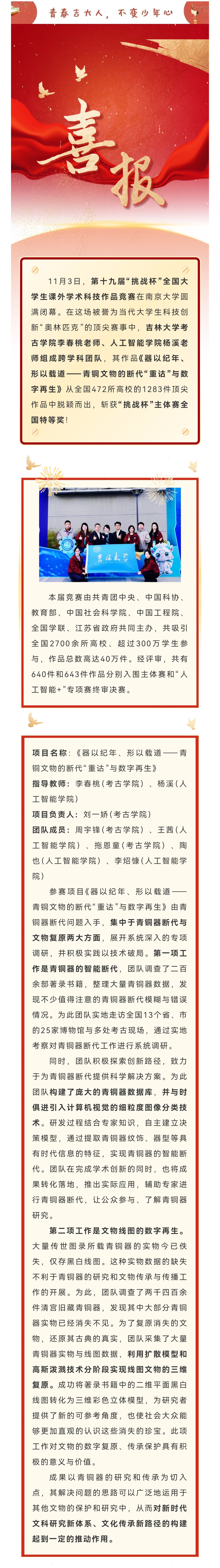 上一条:关于开展吉林大学第十五届“挑战杯”大学生创业计划竞赛校内赛的预通知 下一条:优胜杯!主体赛特等奖+1,国奖+20,吉大师生创“挑战杯” 赛事新纪录